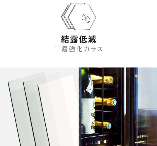 紫外線によるワインの劣化を防ぎながら、熱の移動も防ぐ三層ガラス