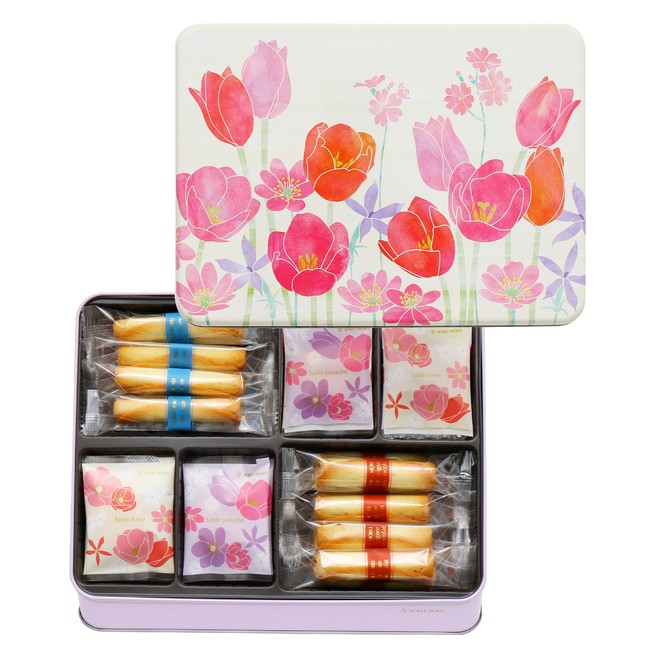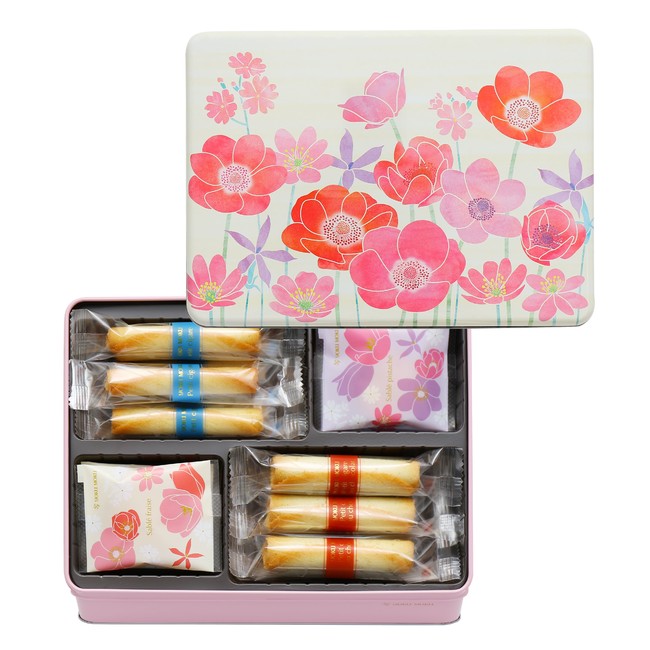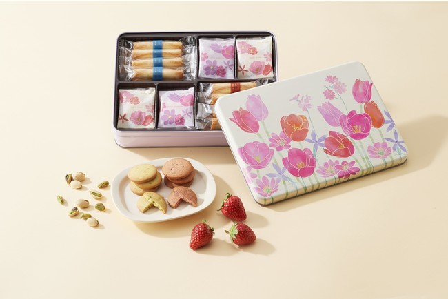 本商品では、ギフトの定番として長年愛される「シガール」のプティサイズはもちろん、春限定のサブレ フレーズ(いちご味)とサブレ ピスターシュ(ピスタチオ味)の2種類が楽しめます。また、缶パッケージは、春のお花であるアネモネやチューリップを中心に、一面にお花をあしらった華やかなデザインに仕上げました。多くの人が新たな一歩を踏み出す春という季節、感謝やお祝いの気持ちを込めてお花を贈るように、“今こそ伝えたい気持ちが相手に届きますように”というヨックモックの想いをギフトに込めました。