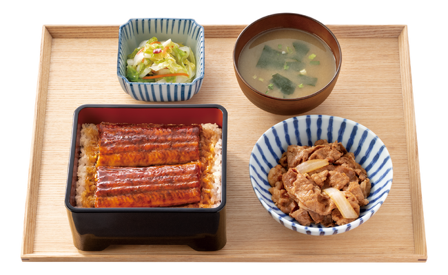 鰻と牛丼の具を両方楽しめる「鰻重牛小鉢セット」も割引対象