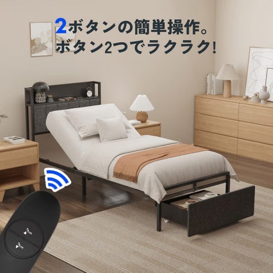 「電動ベッド・B1」は、背もたれの昇降が可能なモーターを搭載。リモコンは上下ボタンのみのシンプル設計で、年齢を問わず直感的に操作できます。読書やスマホ操作、テレビ視聴など、さまざまなシーンに合わせて【最大60°】までスムーズに調整可能です。