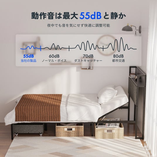 静音モーター搭載:作動音は最大55dbと低騒音。深夜や早朝の操作も安心です。