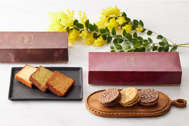 また、季節限定フレーバーも加わったフルーツバターショコラとショコラキャラメルサンド、柑橘を練り込んでしっとりと焼き上げたケークセゾンなど春をイメージした焼菓子もご用意致します。