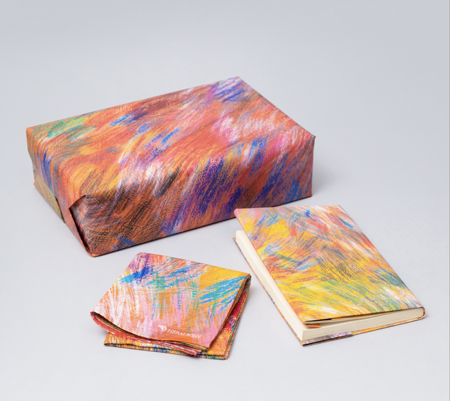 また、HERALBONYでは、年末にかけて「ART IN HEART ~心に残る、アートを贈る~」をテーマに、様々なコラボギフト商品を販売しております。この度発売される商品においても、より皆様に「心に残る、アートを贈る」というギフト体験をしていただきたいという思いから、ヘラルボニー契約作家が描く異彩アート10作品が起用されたアート包装紙を企画いたしました。