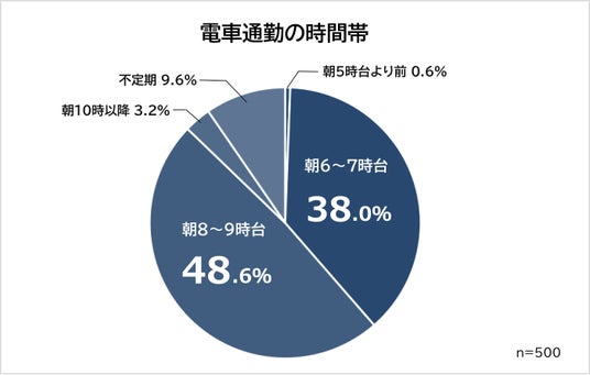 電車通勤の時間帯で最も多かったのは「朝8時~9時台(48.6%)」でした。