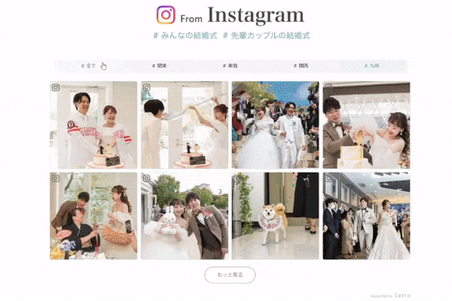 さらに、今回リリースされたタブ表示機能を活用して地域別にInstagram投稿を表示することで、ユーザーは希望の地域を選択してInstagram投稿を見ることができるため、比較検討しやすくなりました。ハナユメでは、今後もUGCを式場への理解促進及び利用意欲を向上させるためのコンテンツとして活用することで、予約率の向上を目指してまいります。