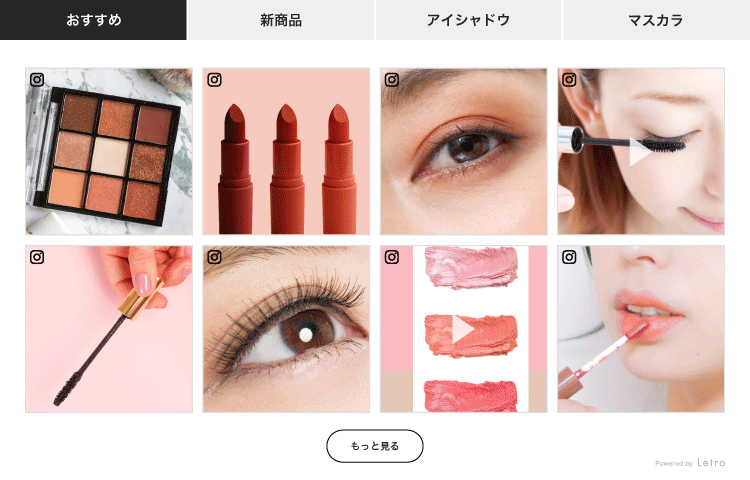 タブ表示機能とは、Instagram投稿をタブ別に切り替えて表示することができる機能です。商品カテゴリや顧客の悩み、利用目的といったカテゴリごとにタブを設定することで、よりリッチなコンテンツを表示できるようになりました。またタブ内のUGCごとにCTRやCVRの計測ができるため、ユーザーのニーズに合わせてUGCを最適化することができ、顧客体験の向上を図ることができます。