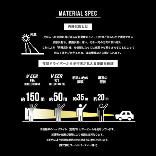 ※1:150mの再起反射における視認性はREFLECTION GRAYカラーのスペックとなります。