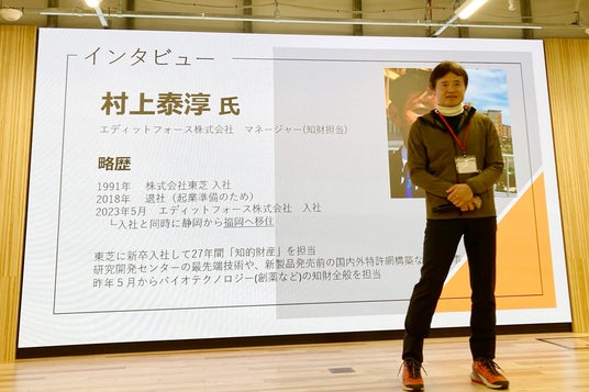 CXOバンクの説明・事例の紹介・CXO人材の自己紹介・移住関連情報の提供を行いました。また、静岡から福岡へ移住されたエディットフォース株式会社 マネージャー(知財担当)村上 泰淳氏に登壇いただき、移住してみて感じたリアルな声や福岡でのキャリアプランについてお話しいただきました。