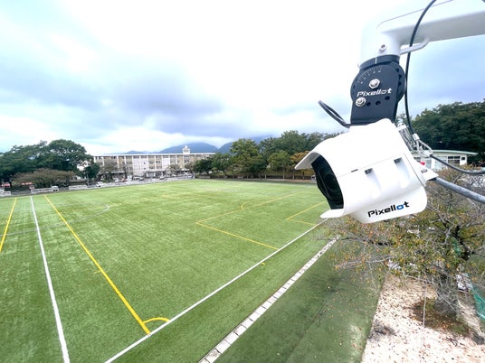 「実相寺サッカー競技場(人工芝)」に設置されている無人撮影カメラは、AIによる自動撮影や編集機能を備えています。現在、バスケットボール、バレーボール、ハンドボール、サッカー、ラグビーなど16競技の撮影に対応しており、さまざまなスポーツを撮影することができます。