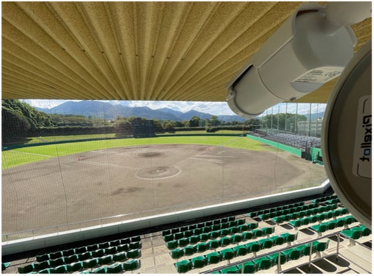 「別府市民球場(稲尾和久記念館)」には、ホーム側とセンター側の映像を自動で切り替えできる野球専用AIカメラを設置しています。