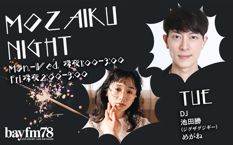 『MOZAIKU NIGHT』はbayfm深夜1時から毎週月曜日から水曜日に賑やかな放送をお届け中!各曜日個性的なDJがそれぞれの色を放ちながら、bayエリアの夜を寝かせません!