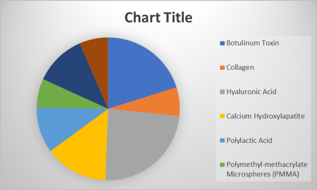 回答-タイプに基づいて、市場はボツリヌス毒素、コラーゲン、ヒアルロン酸、カルシウムヒドロキシアパタイト、ポリ乳酸、ポリメチルメタクリレートマイクロスフェア(PMMA)、脂肪注入などに分類できます. ヒアルロン酸セグメントは、これらのフィラーの幅広い用途と相まって、これらの製品タイプの強力な採用によるもので、最高の顔面注射剤の市場シェアを占めています。この女性のがん症例の急激な急増は、このタイプの顔面注射に起因する強力な処置量により、効果的な健康機器ボツリヌス毒素セグメントに対する需要の増加につながると予想されます。