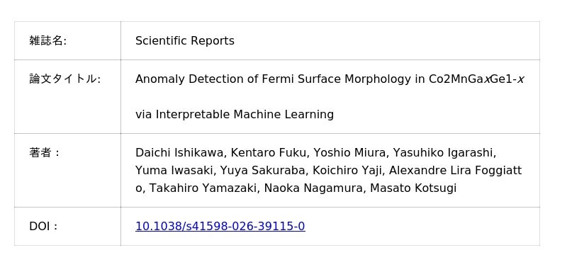 説明可能AIのアプローチでホイスラー合金のフェルミ面の解析手法を開発。