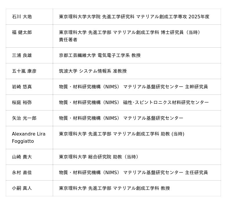 ※PR TIMESのシステムでは上付き・下付き文字や特殊文字等を使用できないため、正式な表記と異なる場合がございますのでご留意ください。正式な表記は、東京理科大学WEBページ(https://www.tus.ac.jp/today/archive/20260417_0478.html)をご参照ください。