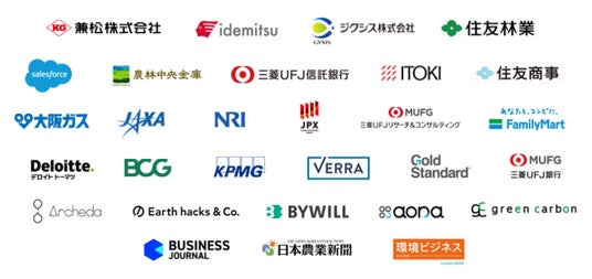 Green Carbon株式会社、国立研究開発法人宇宙航空研究開発機構(JAXA)、大阪ガス株式会社、デロイト トーマツ ベンチャーサポート株式会社、Gold Standard、Verra、兼松株式会社、農林中央金庫、株式会社ファミリーマート、日本農業新聞、株式会社イトーキ、KPMGコンサルティング株式会社、ジクシス株式会社、住友林業株式会社、環境ビジネスオンライン、株式会社東京証券取引所、三菱UFJリサーチ&コンサルティング株式会社、株式会社野村総合研究所(NRI)、ビジネスジャーナル、株式会社セールスフォース・ジャパン、ボストン・コンサルティング・グループ(BCG)、出光興産株式会社、住友商事株式会社、三菱UFJ信託銀行株式会社、日本経済新聞、株式会社Archeda、Earth hacks株式会社、株式会社バイウィル、aora株式会社、三菱UFJ銀行