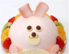 苺と苺クリームをサンドしたかわいいうさぎのデコレーションケーキ。