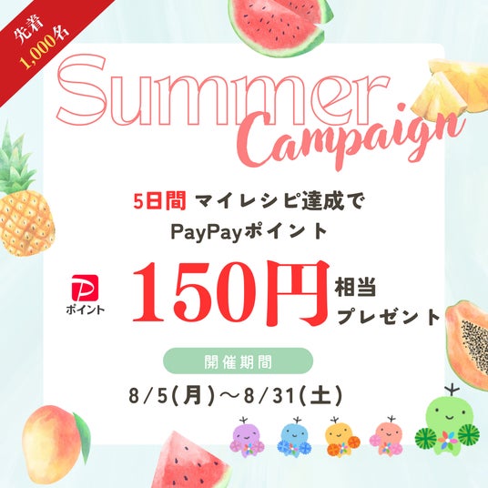 株式会社ポリグロッツ(本社:東京都新宿区、代表取締役:山口隼也)は、英語学習アプリ「レシピー」を初めてご利用いただく方を対象に、特別キャンペーンを実施しています。サービスをご利用の上、マイレシピを5日間達成された先着1,000名様に、PayPayポイントをプレゼントいたします。