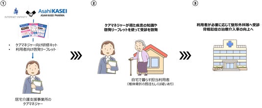 1.旭化成ファーマとインターネットインフィニティーが骨粗鬆症の研修キットや疾患啓発資材を作成してケアマネジャーに提供