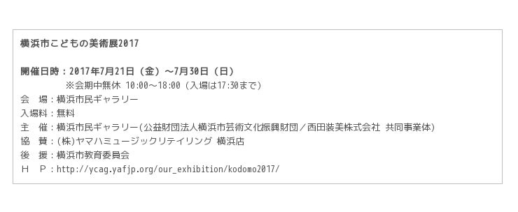 7月21日(金)から横浜市民ギャラリーで開催される「横浜市こどもの美術展」。今年も子どもたちの作品を募集し、応募作品をすべて展示します!