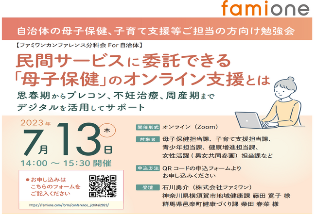 2023年7月13日に「ファミワンカンファレンス分科会For自治体」を完全オンライン形式で開催します。