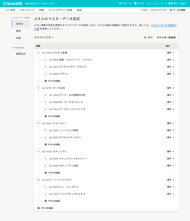 株式会社SmartHR(本社:東京都港区、代表取締役CEO:芹澤 雅人)が運営するクラウド人事労務ソフト「SmartHR(スマートエイチアール)」は、スキル情報の可視化・一元管理を実現する新機能「スキル管理」を2023年8月22日より提供いたします。「スキル管理」は、従業員スキル情報の収集・更新の手間を取り除き、従業員スキル情報の管理を効率化します。