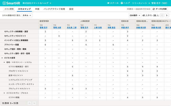 スキル・資格・研修ごとに従業員の保有・受講履歴を俯瞰できる「スキルマップ」機能を保有