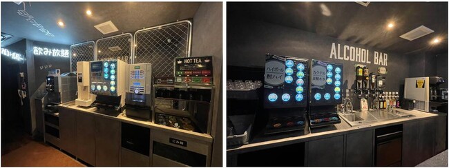 自動受付・精算はもちろん、ドリンクバー・アルコールバーも完備したフルセルフ店舗となります。