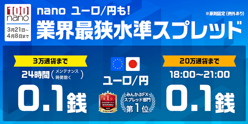 nano「ユーロ/円」スプレッド「0.1銭」キャンペーン