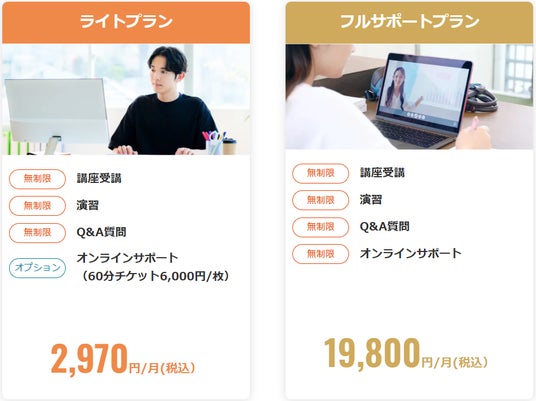 現役エンジニアによるサポートが受けられる有料プランもあり、Q&Aで質問し放題のライトプランが月額2,970円(税込)。オンラインで講師から会話しながらのサポート(回数無制限)を受けられるフルサポートプランが月額19,800円(税込)でご利用いただけます。
