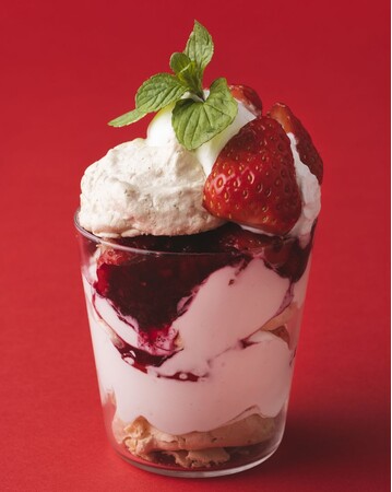 あまおうの美味しさを引き立てる甘さ控えめのヴィーガンパフェ。
