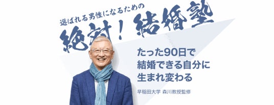 「絶対!結婚塾」は、早稲田大学国際教養学部で長年、恋愛学・結婚学を研究する森川友義教授が全面監修した男性のための恋愛・結婚プログラムです。