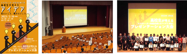 文京学院大学(学長:櫻井隆)は、3月8日の“エスカレーターの日”に10組25名の高校生がアイデアを競う「エスカレーターの安全な乗り方アイデア2023」最終プレゼン大会を開催したことを、お知らせいたします。本大会には、1都3県(東京都・埼玉県・神奈川県・千葉県)の高校生から延べ43組122名が参加いたしました。