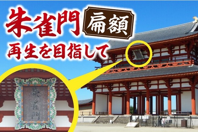 平城宮跡の朱雀門が国によって復元された際、その門に掲げる扁額を奈良市が制作・設置しました。その後、経年劣化により「朱雀門」という文字が読みづらくなったことから、修繕費用を募るガバメントクラウドファンディング(ふるさと納税)を実施します。
