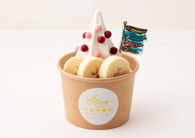 【数量限定】バナナソフトクリームにフレッシュバナナを合わせ、カラフルなシリアルチョコで飾ったお子さま向けパフェ。こいのぼりver.でお届けします!