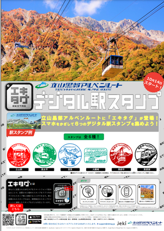 駅スタンプアプリ「エキタグ」では、2023年10月14日より立山黒部アルペンルートにてデジタル駅スタンプのサービス提供を開始します。
