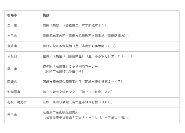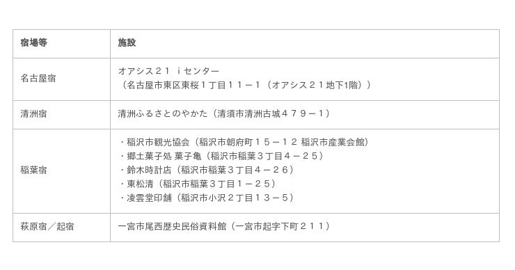 この度、協議会参画地域である県内の東海道・美濃路・飯田街道の宿場等を周遊し、「御宿印」を集めていただく「御宿印めぐり」キャンペーンを開始しますので、お知らせします。