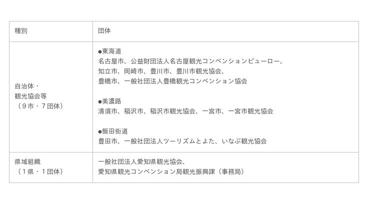 構成員:参画市の観光所管部局長及び市町観光協会長等、一般社団法人愛知県観光協会専務理事