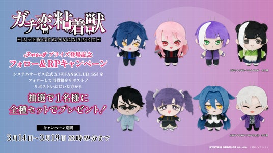 システムサービス株式会社(本社:東京都豊島区、代表取締役社長:田村宗弘)は、『ガチ恋粘着獣 ~ネット配信者の彼女になりたくて~』のプライズ商品を2025年3月に順次アミューズメント施設にて展開いたします。