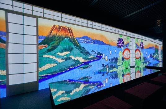 立体映像空間で鮮やかな浮世絵の世界に没入できる体感型デジタルアートミュージアム。花鳥画の中にストーリーを創り上げた繊細な筆捌き、美しい色彩表現で圧倒する日本の美と花の世界。