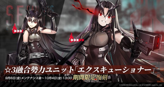 強力な融合勢力ユニットを捕獲できる「捕獲作戦」にて、「9月6日(金)メンテナンス後」より過去の捕獲区域『S09地区鉄血拠点外縁』と『S09地区鉄血拠点』が復刻し、それぞれで★3ユニット「エクスキューショナー」と「スケアクロウ」の捕獲が可能になります。