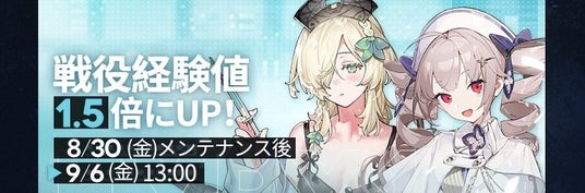 「8月30日(金)メンテナンス後~9月6日(金)13:00」の期間で、通常と自律作戦における、「トータル経験値」及び「指揮官経験値」を含む戦役経験値が1.5倍にUPします。