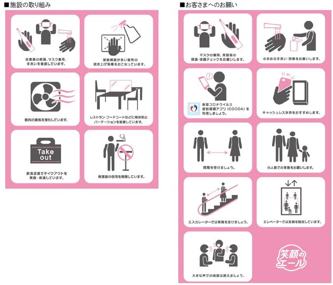 三井不動産グループが運営する商業施設では、新型コロナウイルス感染拡大防止のため下記をはじめとした様々な取り組みを実施しております。