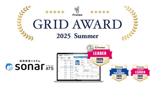 Thinkings株式会社(本社:東京都中央区、代表取締役社長:吉田 崇、以下:当社)が提供する「採用管理システムsonar ATS(https://hr.sonar-ats.jp/itreview_2025summer)」は、アイティクラウド株式会社(東京都港区、代表取締役社長 兼 CEO:黒野 源太)主催の「ITreview Grid Award 2025 summer」において、採用管理システム(ATS)部門で3年連続「Leader」を受賞しました。また、大企業部門の「High Performer」および中堅企業部門の「Leader」も受賞しました。これまでに、100件以上のレビューを頂いており(2025年7月時点)、認知度と顧客満足度の双方が優れた製品として評価されました。