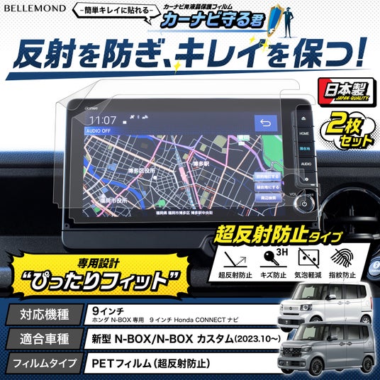 そんな悩みを解決するのが、BELLEMOND(ベルモンド)の『-簡単キレイに貼れる- カーナビ守る君 超反射防止タイプ』。2024年3月に同シリーズから、ホンダ 新型N-BOX / 新型N-BOX カスタム (2023.10~) 9インチ Honda CONNECTナビ専用商品が発売されました。