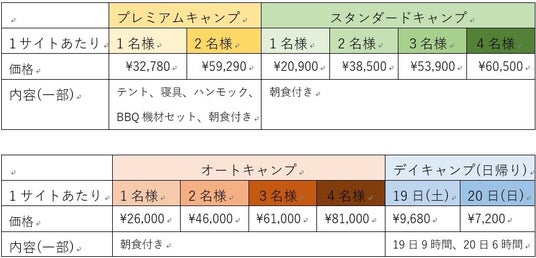 ●キャンプサイトチケット有料(4種類)