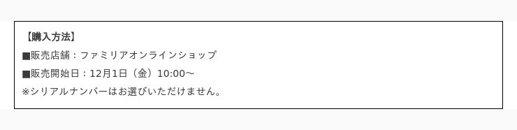 2023年11月17日(金)~ ファミリアオンラインショップ・全国のファミリアショップにて順次販売