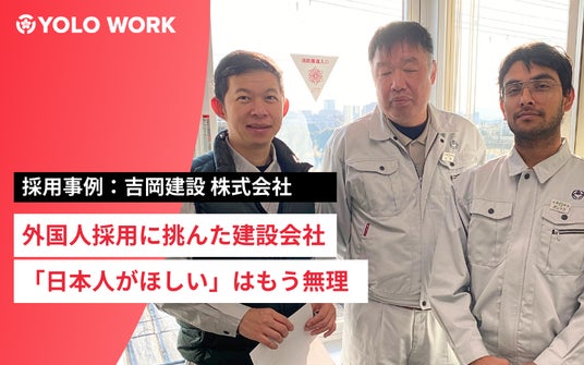 239の国や地域を出身とする30万人以上の在留外国人が登録している日本最大級のメディアを運営する株式会社YOLO JAPAN(代表取締役:加地太祐、大阪本社:大阪市浪速区、以下「YOLO JAPAN」)は、人材不足が深刻な建設業界における外国人材の採用成功事例を公開いたしました。