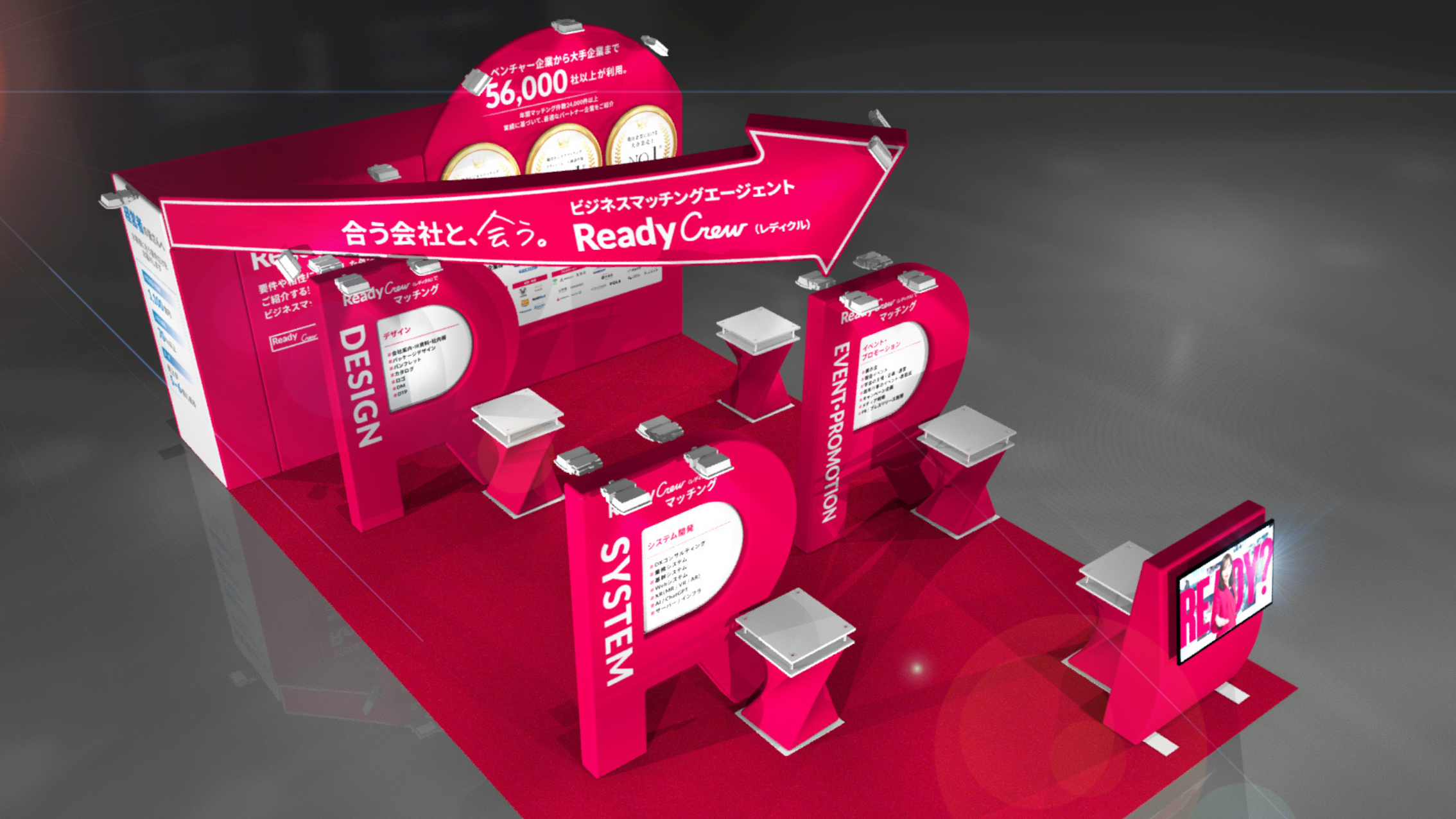 当社ブースでは、ビジネスマッチングサービス「レディクル」を中心に、業務課題解決や新しいパートナーとの出会いを実現する体験をご用意しています。