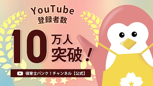 日本最大級の保育士専門の就職・転職支援サービス「保育士バンク!」を運営する株式会社ネクストビート(本社:東京都渋谷区、代表取締役:三原誠司)は、「保育士バンク!」公式YouTubeのチャンネル登録者数が10万人を突破したことをお知らせいたします。