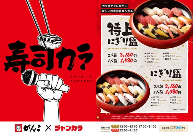 がんこフードサービス株式会社とコラボレーションし、がんこ寿司がカラオケ店内で楽しめる世界初の新サービス「寿司カラ」を導入しました。